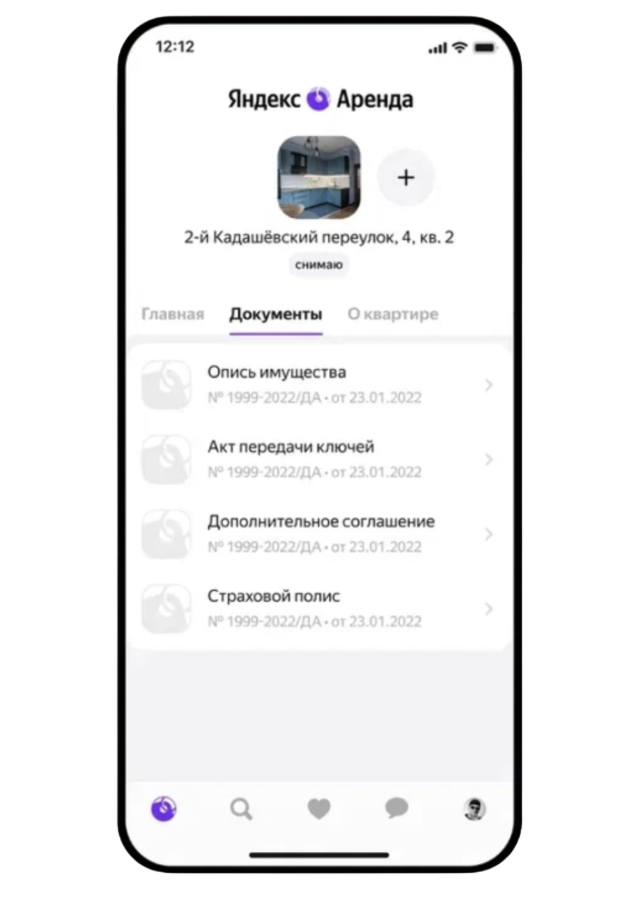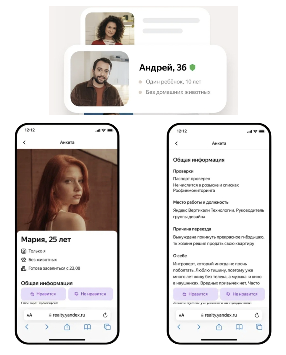 Вы открываете приложение и видите готовые анкеты уже проверенных жильцов.
